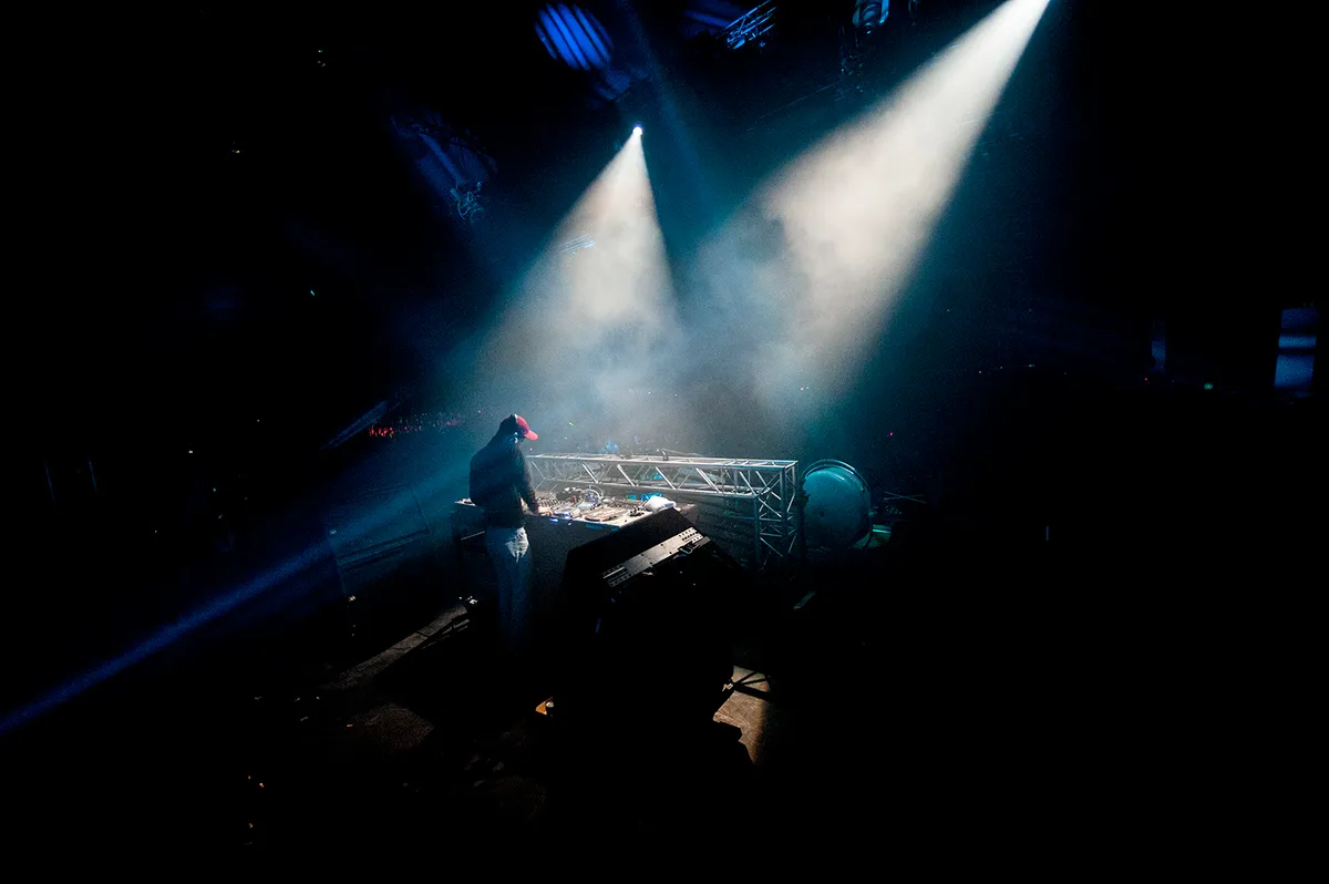 Twee acts die enorm van elkaar verschillen zijn DAM-FunK, die vanavond een dj-set in de X-Ray ten gehore brengt, en de Spanjaard John Talabot. Talabot neemt het over na Dekmantel Soundsystem, maar weet ons, ondanks dat het prima klinkt, beduidend minder te intrigeren. Zijn begin is veelbelovend, maar al gauw blijft de man uit Barcelona hangen in te stroperige housebeats met een technovibe. Wat hij wil, slaat niet helemaal aan, ook al weet hij de tent vol te houden. In onze ogen is Talabot een veel betere producer dan dj, in tegenstelling tot DAM-FunK, die juist on stage helemaal tot bloei komt. Damon G. Riddick gaat tijdens zijn set zelfs op de tafel springen waarop zijn draaitafels staan, om de boel nog meer op te zwepen. Als dat maar goed gaat.. De ambasseur van de funk is gigantisch muzikaal, en minder schreeuwerig bezig dan gisteren, toen hij live optrad en 'motherfucker' zijn lievelingswoord bleek. Hunee, soms headbangend, en Antal zijn duidelijk groot bewonderaars van de man uit Amerika, die niet vies is van een jointje meer of minder. Dat de sfeer er in de X-Ray uitstekend in zit, heeft alles te maken met de 'vrolijke' en soulvolle programmering van vannacht; met uitsluitend muziek die op de heupen werkt. Het is swingen geblazen. Met de heftige kick uit de track Money In The D, van Omar S, nemen we afscheid van DAM-FunK. Het wordt tijd om naar het Engelse wonderkind Happa te lopen.