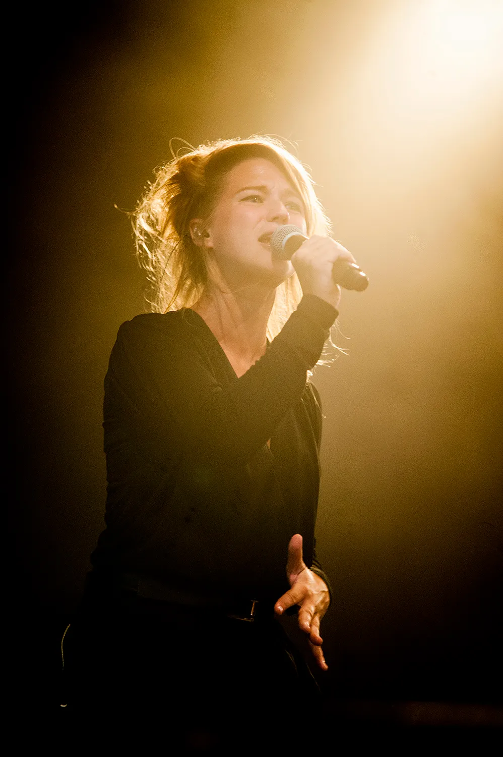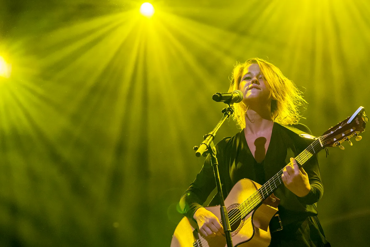 Selah Sue speelt als vierde nummer 'Fyah Fyah'. Niet per se een verademing omdat ze het in haar eentje doet, maar wel omdat haar rockband efkes achter de coulissen plaatsneemt.