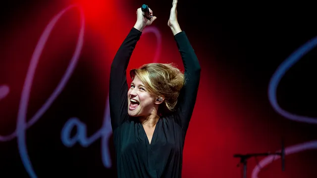 Als de Vlaamse tussen de nummers door spreekt, is ze klein. Maar met dezelfde strot moeten ook de achterste rijen van de Alpha worden bereikt. Want het staat uiteindelijk vol in de hoofdtent.