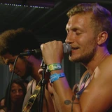 Heeft er zin in. Hossen, meezingen, klappen, alles alsof het festival al halverwege is en iedereen al schouderdiep in de festivalstemming zit. Knap hoor, zo vroeg op de dag, in de stervenshete tent.