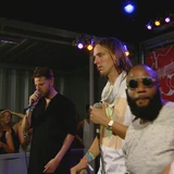 Vanavond wordt er in de Alpha al een aantal keer op gewezen: De Jeugd van Tegenwoordig bestaat tien jaar. En het viertal voelt zich niet te goed om dat uitgebreid te benadrukken met een boek, een speciale uitgave van Volkskrant Magazine, twee jubileumshows in de Heineken Music Hall, vier integrale albumshows én een speciale De Jeugd van Tegenwoordig-gin. Ook op Pinkpop werd het bestaan van de 's Neerlands favoriete hiphopact op feestelijke wijze beklonken en kwamen de heren voor hun grande entree te voorschijn uit een ingepakt cadeau zo groot als de gemiddelde studentenwoning van de gemiddelde fan. Van verder kijken is tot dusver nog niet echt sprake geweest: in alle shows is enkel plaats voor hits, en daar zijn er zat van. Vandaag op Lowlands dreigt daar echter verandering in te komen.