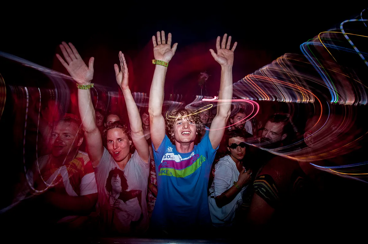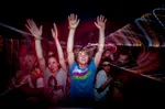 Een jongen vraagt me of 'Born Slippy' straks nog komt: 'Ik heb gehoord dat ze die ook draaien.' Inderdaad, dat doen ze, dat is hun eigen track, leg ik uit. Het is alweer negentien jaar geleden dat het nummer verscheen, een groot deel van het publiek was toen nog niet eens geboren. Naast de jongste generatie die 'Born Slippy' misschien net ontdekt heeft, zijn de ravers van het eerste uur ook volop aanwezig. Dit is raven zoals raven moet zijn: iedereen is gelijk, iedereen gaat er volledig voor. De Heineken (voorheen Grolsch) barst uit z'n voegen met de uitzinnige menigte.