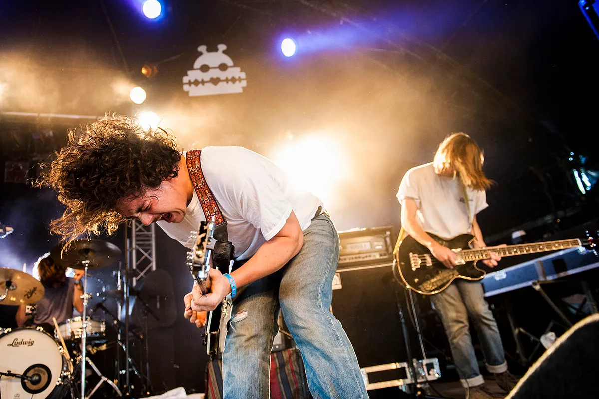 De garagerock-scene in L.A. is hecht: naast Ty Segalls band Fuzz op vrijdag staan vandaag zijn goede vrienden van Wand op het programma. Zij hebben een iets meer classic rock/glamrock-benadering van het genre, met vaak ook een echoënde synth om het nog psychedelischer te maken. Helaas breekt frontman Cory Thomas Hanson al vroeg in het optreden een snaar, wat het optreden ontregelt. De band perst er een nogal fantasieloze stonerjam uit waar Hanson uiteindelijk zelf maar een stukje 'The End' (The Doors) op improviseert. Daarna volgt ‘hitje’ ‘Flying Golem’ gelukkig al snel, om de energie weer een beetje terug te brengen. Met het beukende ‘Self Hypnosis In 3 Days’ doet de band er nog een schepje bovenop, maar Wand komt nergens in de buurt van de furieuze intensiteit die Fuzz gisteren aan de dag legde. En dan gaat ook nog eens de versterker van de andere gitarist kapot. Soms heb je gewoon pech. ‘At least we got a nice cover out of it’, besluit Hanson, die zich aan het eind nog even uitgebreid excuseert. Voortaan toch maar twee gitaren meenemen. (Sjoerd Huismans)