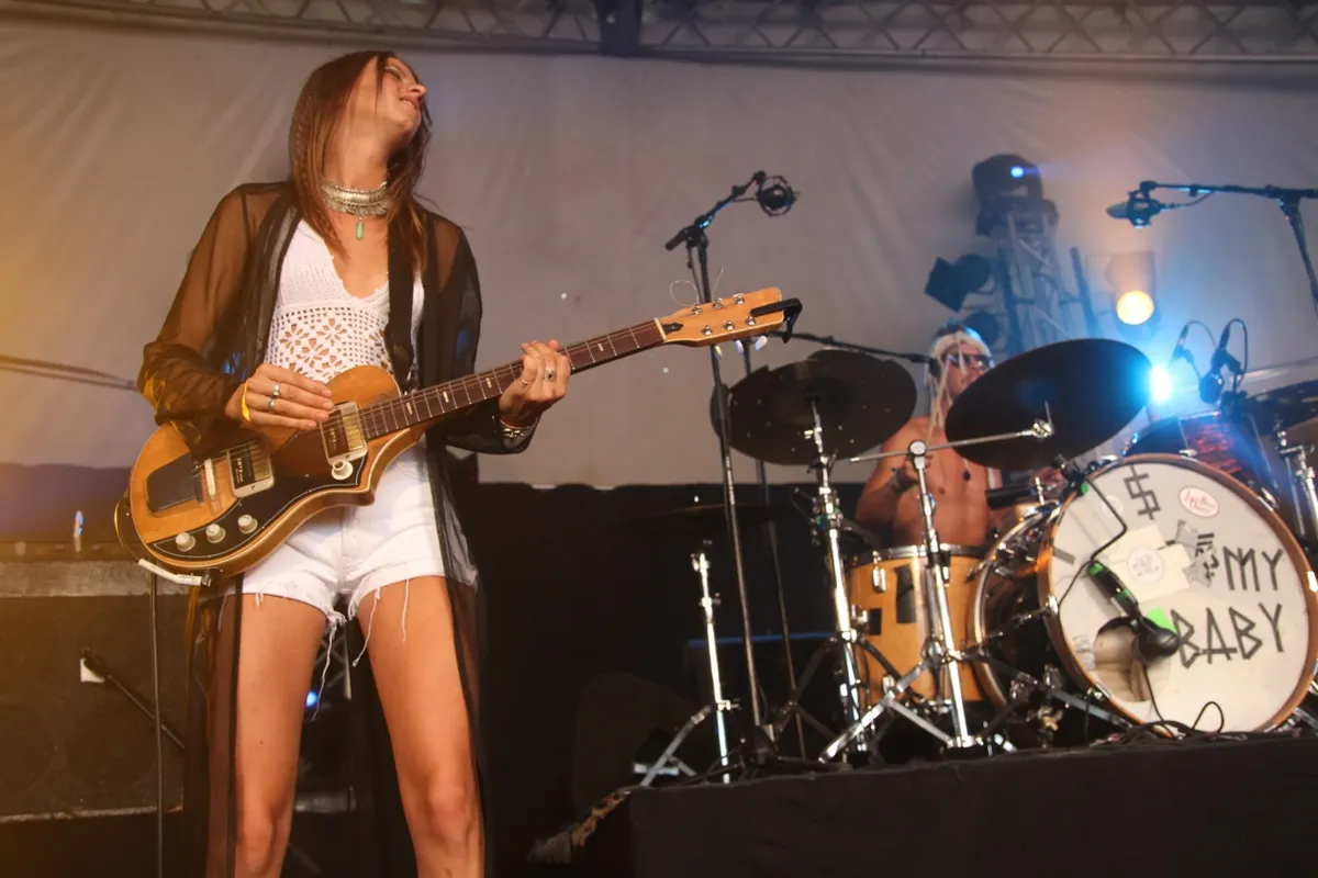 ‘MY BABY’s here to bring you voodoo breakfast,’ kondigt gitarist Daniel Johnston van de Amsterdamse band zichzelf aan. Met zangeres Cato van Dijck en drummer/broer Joost van Dijck, blijkt al bij het eerste nummer dat het ontbijt er goed ingaat in de vroege middag. De groovy bluesy rock houdt de aanwezigen in de Lima constant in beweging. Het trio bestaat uit kundige, op elkaar ingespeelde muzikanten die weten hoe ze broeierig en lekker opzwepend moeten klinken. My Baby vond z’n oorsprong in The Souldiers, ooit huisband van De Wereld Draait Door. Hun debuut MY BABY Loves Voodoo werd dit jaar opgevolgd door Shamanaid, dus materiaal is er voldoende, alleen zit er geen enkel écht goed liedje tussen. Stuwende grooves, daar draait het om. En om de aankleding. Het gezelschap heeft flink in de verkleedkist gegraaid. Johnston met zijn giletje en bolhoed, de drummer met zonnebril, ketting en touw in z’n haar en Cato van Dijck zelf is de wigwam-Heather Nova: het voodoo-thema wordt nogal op het carnavalesque doorgevoerd. Maar de feestvreugde is er. De drums stampen op z’n Black Keys door, Johnsons gitaarsolo’s wapperen bluesy, Cato van Dijck heeft een vocale uithaal die knap lang duurt. Nu de memorabele liedjes nog. (Norbert Pek)