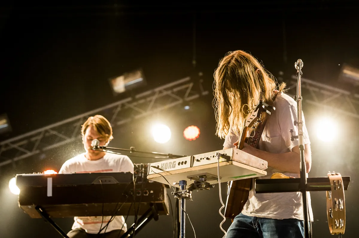Even eerder steekt gitarist Ben Rider zijn tong even uit naar de camera. Ja, dat is het moment, ja. Jacco Gardner zelf is bepaald geen publieksmenner of podiumpersoonlijkheid, eerder een druif van jewelste. We moeten het doen met een ‘Hallo Lowlands!’ en excuses voor een ‘misverstandje’. De band heeft geen naar mottenballen riekende sixties-kleding van de zolder van de ouders geplukt - zoals zoveel andere psychpop-adepten. Ook geen keur aan gastartiesten op het podium - zoals zoveel andere Nederlands-acts die zich op Lowlands presenteren. Jacco Gardner speelt een hele solide show zonder franje. Dat is lovenswaardig, maar...