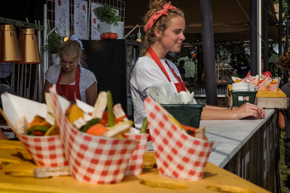 De Plenty, vernoemd naar en geïnspireerd door het kookboek van de topchef Yotam Ottolenghi, is een relatief nieuw gezicht. De Visser is dat niet. Hij begon zeven jaar geleden op Lowlands, een verhaal apart: 'Lowlands-directeur Eric van Eerdenburg kwam vroeger vaak bij jongerencentrum Pentastoma in Roden waar ik werkte. Kennelijk heb ik indruk op hem gemaakt; jaren later luisterde ik naar Kunststof waarbij Erik werd geïnterviewd en hij noemde mij als een van zijn inspiratiebronnen. Daarop nodigde ik hem bij mij thuis uit en mijn vrouw begon er al over dat ik als chefkok zou goed passen bij Lowlands, niet wetende wat er aan logistiek daarbij komt kijken,' lacht De Visser.