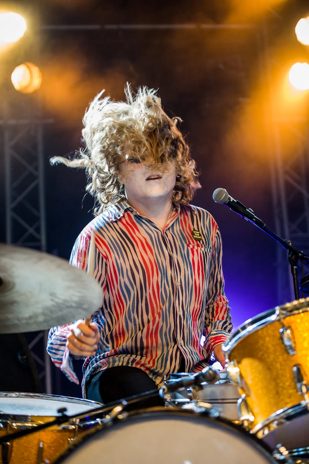 Vroeg in de set komt ‘Hazemaze’ langs, een slepende bluesy track van de plaat uit 2013. Meteen wordt duidelijk wat een ontzettende intensiteit Fuzz in huis heeft. Ty Segall ramt zijn drumstel aan gort. Hij zit er zo houterig bij dat het lijkt alsof hij eigenlijk helemaal niet kan drummen. Maar tegen het einde komt hij in de buurt van een volleerd jazzdrummer als hij zich laat gaan in de ene fill na de andere. Ook twee al uitgebrachte nieuwe songs, het zware ‘Pollinate’ en het groovy Jimi Hendrix-achtige ‘Rat Race’ (zelfs al gepromoveerd tot opener) passen naadloos tussen het oude materiaal. Er kwamen daarbij nog wel een stel liedjes langs die we nog niet kenden, en die beukten ook zeer lekker.