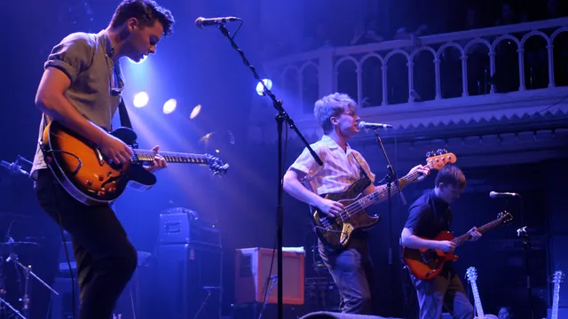 Zanger George Waite van The Crookes knijpt in een stressbal en werpt het ding tussen de gitaarversterker en het drumstel. Toch nog wat zenuwen? Als ze eenmaal beginnen stralen ze vooral zelfvertrouwen uit. Waar de band op Eurosonic nog een vrijwel volledig up tempo set speelde, beginnen ze nu met ballad City Of Lights. Een dappere keuze. Is deze band klaar voor de festivalweides?