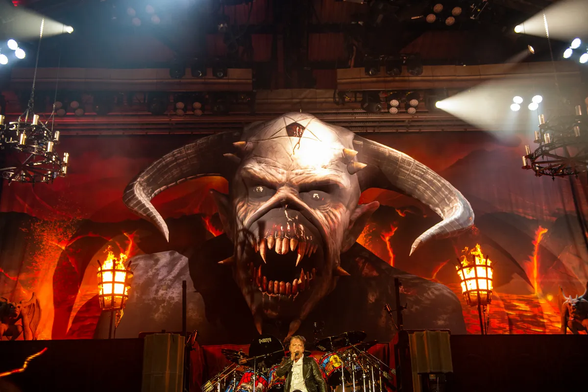 ‘We hebben ook wel een paar Eddie’s gemaakt, hoor’, grinnikt Matthew Whitehead, oprichter van Airworks Inflatables, terwijl hij door de loods loopt. Zijn bedrijf is in de internationale muziekscene toonaangevend als het gaat om luchtkastelen en opblaasmonsters die in een flinke koffer passen zodra je de lucht eruit hebt laten lopen. Wil je betoverende podiumdelen die je kunt meenemen op internationale tours? Dan bel je Airworks.