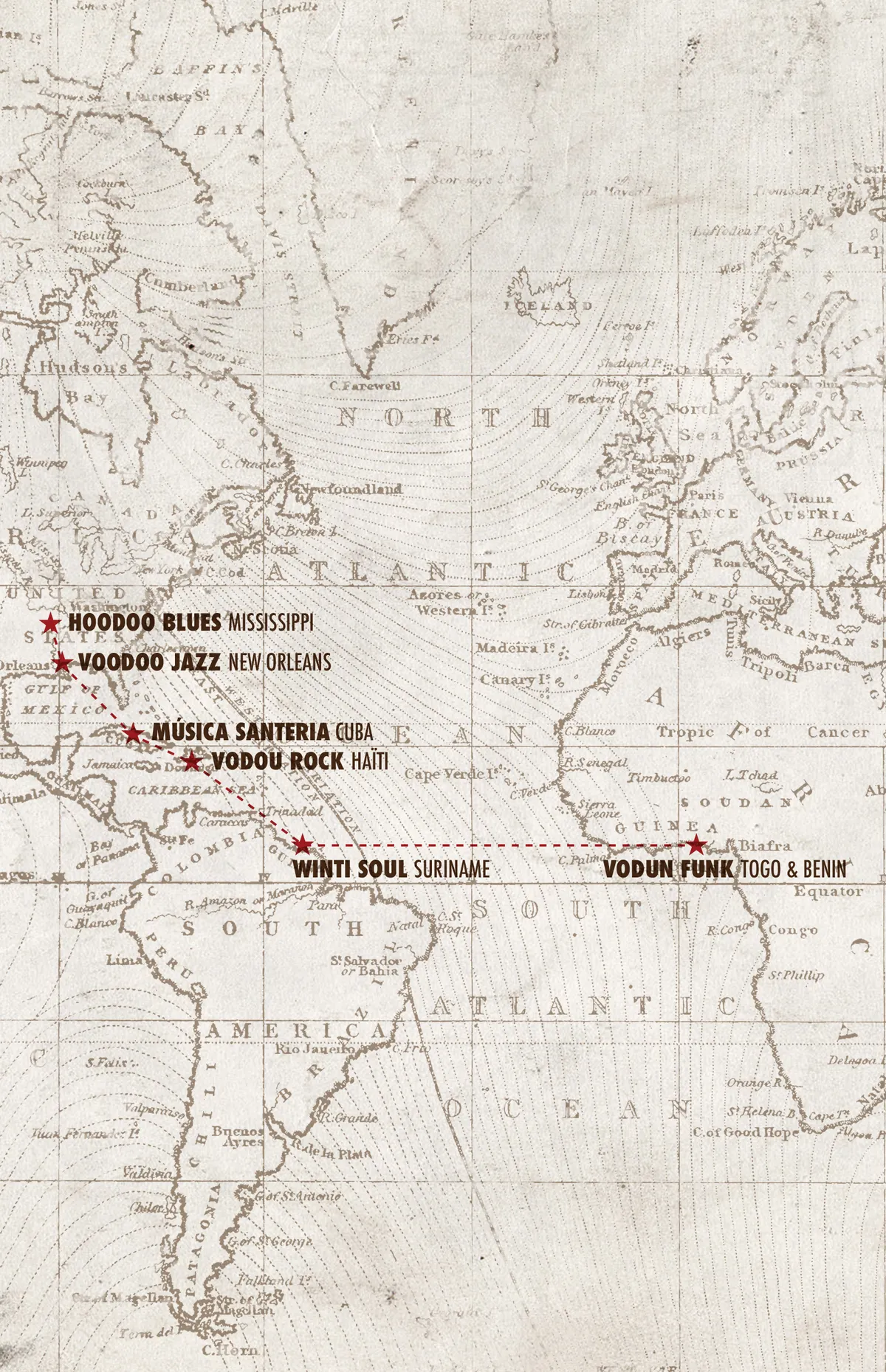 Toch bleven sommige uitingen bestaan, waarschijnlijk omdat de slavenhouders daarvan niet doorhadden dat ze religieus waren. ‘Muziek is daarom een belangrijke bewaarplek van voodoo geweest. Eigenlijk zijn voodoo en muziek sowieso één. De manier van bidden en in trance raken, waar voodoo eigenlijk om draait, gaat via de muziek. Voodoosi zeggen zelf dat er eigenlijk geen onderscheid bestaat tussen muziek maken en een religieuze ervaring hebben.’