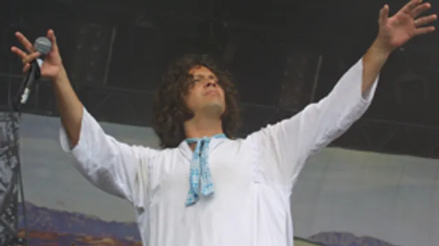 Hello people, good morning! Er staat een halfzachte man met lang krullend haar en enorme bakkebaarden in een jurk op het hoofdpodium. En hij is niet alleen. Nee, je bent niet verzeild geraakt in de nieuwe video van de Red Hot Chili Peppers, maar in de beatmis van Tim DeLaughter. Twintig vrouwen en mannen in witte jurken gaan uit hun dak en wrijven ons de slaap uit de ogen. The Polyphonic Spree, je moet het gezien hebben. Is dit een slechte musical of een goeie grap, deze Belle & Sebastian on acid? Of beter: Flaming Lips meets Jesust Christ Superstar. De super opbeurende close harmony pop geeft genoeg energie voor de tweede, opnieuw warme dag van Rock Werchter. Mis ze niet op het komende Lowlands festival. Werchter kent twee podia: de Main Stage en de Pyramid Marquee, een uit de kluiten gewassen tent, formaatje Golf. Een goeie plek voor Danko Jones, die na Pinkpop ook hier een geile rockshow neerzet. Dat lukt Interpol een uurtje later niet. Matig geluid en te vrolijke mensen spelen de Amerikanen parten. Obstacle 1 en PDA komen dankzij de herkenning nog het beste door, maar de rest is en blijft pure Joy Division rip-off. The Roots hebben Cody Chesnutt thuisgelaten, maar de rest van de band is in goede doen. Iets te goed misschien wel, want het solo gefreak en gepiel neemt schrikbarende vormen aan voor een festival optreden. Als je twee uur lang in de Paradiso staat, okee, maar hier? Er valt overigens nog genoeg leuks te beleven, want The Next Movement, Water en The Seed komen ook voorbij. De van de club optredens bekende keyboard medley met Hot In Herre, Beautiful en nog wat meer oude en nieuwe klassiekers doet de lippen wel weer krullen. Grandaddy helaas gemist door een dubbelboeking met The Roots. En Ozark Henry op het hoofdpodium zit ik ook niet op te wachten.Dan maar even chillen in het hotel waar, Eddie Murphy zich op de uit elkaar vallende tv suf lacht: Beverly Hills Cop 2. Boeven gepakt, film afgelopen, reclame! Tijd dus voor hitmachine Moby, die opent met Natural Blues en Go en zich daarna zelfs durft te wagen aan een cover van Radiohead’s Creep. De man heeft natuurlijk het charisma van een zachtgekookt ei en hoe hij het voor elkaar speelt, geen idee. Maar ook Werchter gaat plat voor Feeling So Real. Who’s Gonna Give Me A Ride To The Aftershow? Als de broertjes Dewaele om kwart voor twaalf het roer overnemen van Timo Maas staat om de Pyramid Marquee een opgewonden mensenmassa. Minstens de helft van de Rock Werchter gangers staat hier, de andere op het veel grotere veld bij Massive Attack. De respons op de briljante eerste tien minuten, met de Chemical Brothers (Hey Boy, Hey Girl, 2 Many DJ’s, Here We Go!), The Rapture, White Stripes en Felix Da Housecat is overdonderend. Tienduizenden handen en voeten gaan in de lucht als de bas er eenmaal inkomt. Vlaanderen is trots op de Dewaeles en laat dat zien. Het is de meest enhousiaste publieksreactie van het weekend en uberhaupt van het jaar. Eenmaal in de tent (daar komen we nog net) is het geluid nog net wat beter en wippen de plankvloeren vrolijk mee. De basloop van Seven Nation Army blijkt uitgegroeid tot voetbal anthem van de eerste orde en wordt op elke willekeurige andere beat meegezongen. De set van de Dewales is verder eigenlijk vrij veilig, met veel stukken uit hun mega succesvolle Radio Soulwax album (naar verluidt zo’n 200.000 verkocht wereldwijd) zoals Iggy Pop met Salt ‘N Pepa en de Vanessa Paradis cover Joe Le Taxi. Naar het midden toe neemt het tempo wat af en zakt het enthousiasme, maar met DJ Kool’s ‘Let Me Clear My Throat gaat het weer bergopwaarts richting Vitalic’s snerpende electro-techno. In de toegift natuurlijk Green Velvet’s La La Land, de Max Romeo/Prodigy combi van Out Of Space en ja, daar is die baslijn weer. Seven Nation Army schalt richting Brussel. De alternatieve EU top is geslaagd, de Dewaeles springen op het vliegtuig richting Glastonbury voor de volgende verovering.