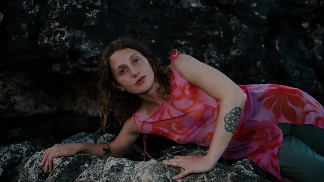 Mathilde maakte ook een abstracte kortfilm die ze toont bij de liveshow. Ze reisde er helemaal voor af naar Ijsland, het thuisland van Björk. 'Voor mij is zij echt de queen, er is niemand die zo mooi muziek maakt over de relatie tussen de mens en de natuur. De Ijslandse natuur is echt prachtig, vol gletsjers, bergen en vulkanen, daarom wilde ik er zo graag heen. Een bijzondere plek om te filmen was Diamond Beach, in de buurt van de gletsjers in het zuiden. Het is een zwart strand dat vol ligt met GIGANTISCHE ijsblokken die daar aanspoelen, bizar om te zien. Ik begreep níét hoe zoiets een natuurlijk fenomeen kon zijn. Er is zoveel gebeurd in die miljoenen jaren dat dat landschap is gevormd, dat je je beseft hoeveel meer er is dan jouw kleine mensenleventje. Ik voelde me daar super kwetsbaar en klein.’