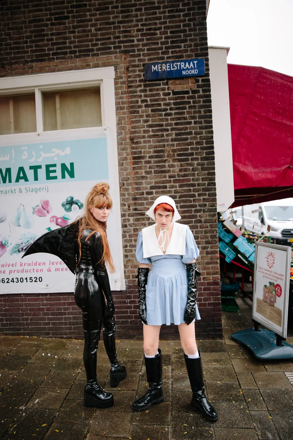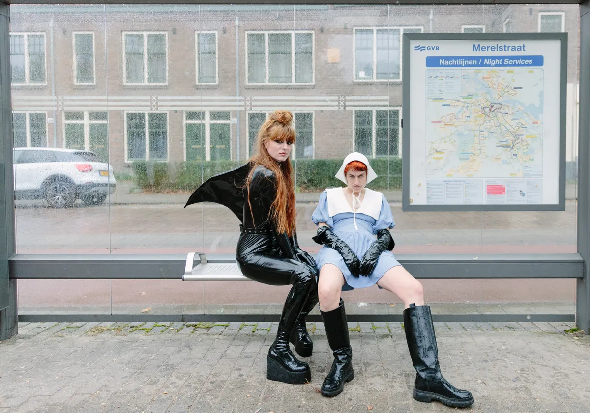 Merol: ‘Ik kan me ook heel erg verliezen in outfits. Hoe kan ik mezelf optillen? Hoe zorg ik dat ik een soort alienesque persoon word, en mezelf uit het realisme kan tillen? Met de nieuwe show heb ik geprobeerd wel heel erg vanuit de muziek te gaan denken. Dat moet éérst staan. Maar het is toch ook nog theatraler en visueler dan voorheen. Ik neem vier dansers mee, ik heb een bordkartonnen decor mee dat je kunt vastpakken. Dat heeft iets kneuterigs en Hollands, is een beetje houtje touwtje, daar hou ik van. Van die slicke visuals die je overal ziet, dat digitale, dat wil ik níét.’