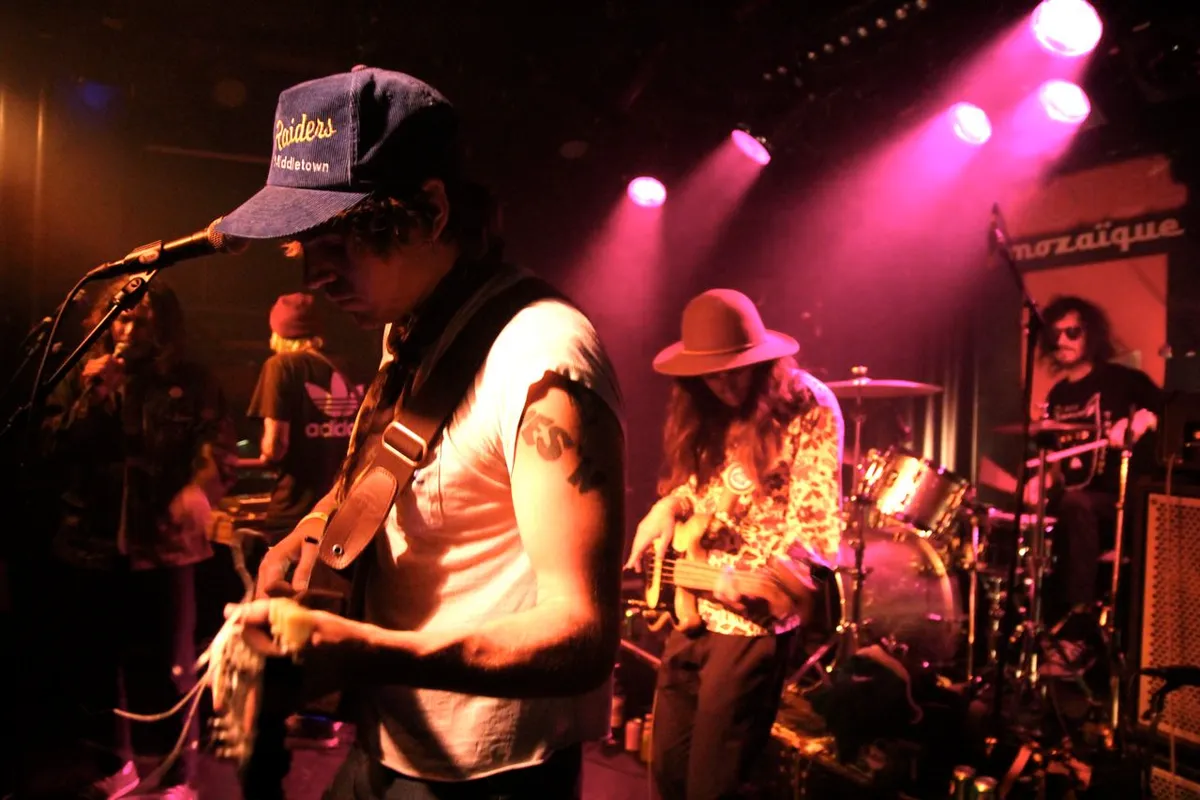 Niets van dat alles. De Californische slackers hebben natuurlijk vaker uit de dope-pot gesnoept en 's middags bleek immers al dat hun zomerse pyschedelische surfrock uitstekend gedijt bij een relaxede, slome delivery (Nielson) en een losse aanpak. En wat is los, als de lead-gitarist en drummer uitstekend bij de les zijn en bassist Scott Montoya niet alleen de looks van Neil van tv-serie The Young Ones, maar ook de beste groove in huis heeft? Wat Nielson ook voor rare fratsen uithaalt (van obscene gestes uit het middenrif en met een komkommer tot het vragen aan een groupie om 'titties, titties?'), Montoya houdt onverstoorbaar vast en met drummer Brian 'don't surf' Stewart de groove in stand. Als het weirde, ongewassen broertje van Allah-Las voeren de vijf Amerikanen je mee in een zeer verslavende sixties drug-trip. En ze genieten in die afgeladen, dansende Rotown met volle teugen. Als de wazige frontman na driekwartier op omvallen staat en het podium wil verlaten, weigeren zijn bandleden resoluut. Verrassend genoeg houdt hij zich nog 20 fijne minuten staande, waarna de anderen shirts (met 'I'm On Drugs' opschrift) en plakken vinyl van derde album Hung At Heart (aanrader!) verkopen. (Ingmar Griffioen)