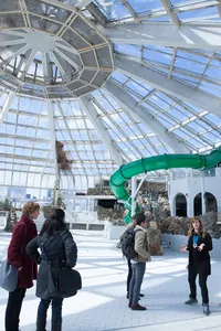 Zaterdag om 13:00 startte de eerste van drie gidsentochten naar het voormalige subtropisch zwemparadijs Tropicana, waar in afwachting van de verdere plannen op dit moment drie huurders zijn gehuisvest door Ad Hoc. Dat de interesse groot is om misschien nog een laatste blik te werpen op dit zwembad, dat al 3,5 jaar is gesloten, is te merken aan de aanmeldingen. Alle drie de tochten zijn uitverkocht.