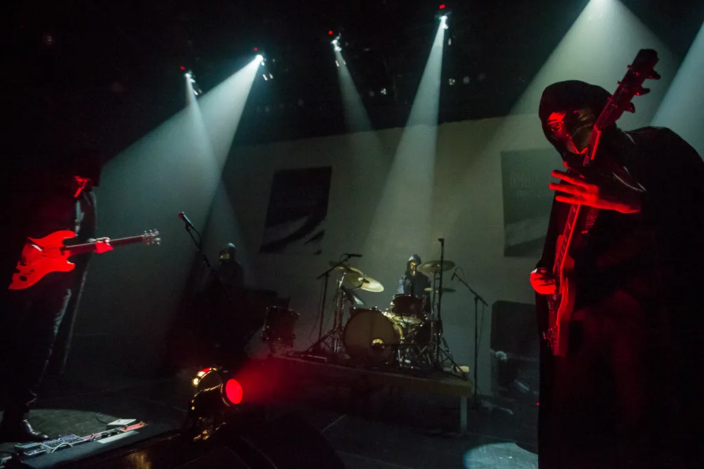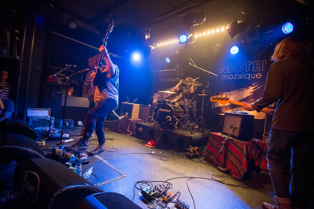 Als de titelloze debuutplaat het al niet voldoende aankondigde, dan laat de opkomst van Briqueville weinig ruimte voor twijfel: dit is de hardste en meest duistere, occulte band van de avond. Het 'best bewaarde sludge-/doom-geheim van België' komt op gehuld in zwarte capes en gouden maskers. Het vijftal boeit vanaf de eerste tel. Opbouwen is het devies, met twee gitaren, bas, toetsenist/screamer en drummer die minutenlang alleen één bekken en één tom beroert. Slepend, duister en aanzwellend, de boosheid gloeit op en ontlaadt in zware doom. Voorwaar een stukje Roadburn op Motel Mozaïque en het Belgische vijftal is dan ook de enige die beide affiches siert.