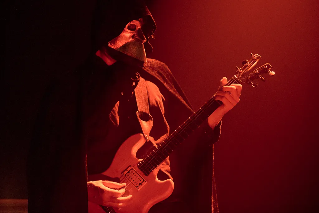 Als de titelloze debuutplaat het al niet voldoende aankondigde, dan laat opkomst van Briqueville weinig ruimte voor twijfel: dit is de hardste en meest duistere, occulte band van de avond. Het 'best bewaarde sludge-/doom-geheim van België' komt op gehuld in zwarte capes en gouden maskers. Het vijftal boeit vanaf de eerste tel. Opbouwen is het devies, met twee gitaren, bas, toetsenist/screamer en drummer die minutenlang alleen één bekken en één tom beroert. Slepend, duister en aanzwellend, de boosheid groeit op en ontlaadt in zware doom. Voorwaar een stukje Roadburn op Motel Mozaïque en het Belgische vijftal is dan ook de enige die beide affiches siert.