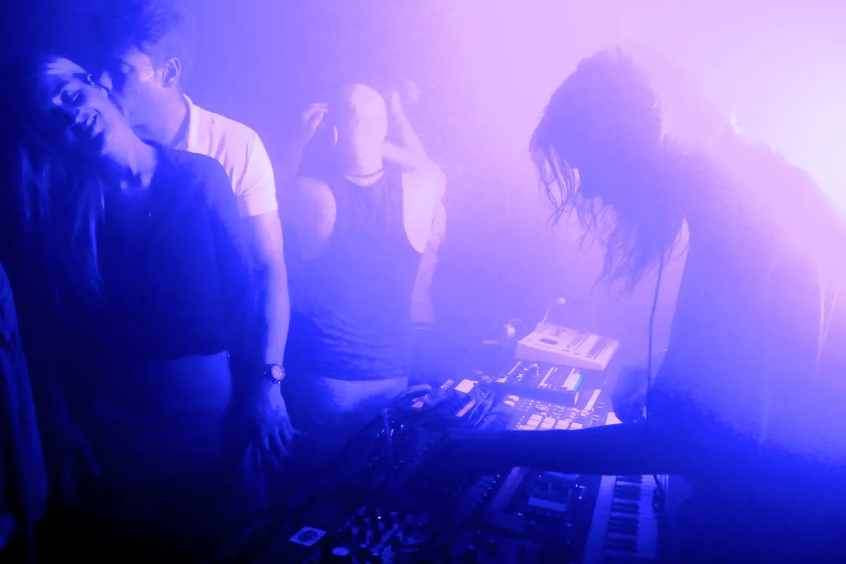 Hij noemt zichzelf Palmbomen II, een soort reïncarnatie. Nog steeds heeft hij een tafel vol hardware voor zich. Nog steeds klinkt zijn muziek low-res, als een afgestofte opname, verloren gewaand in een parallel universum. Maar waar Palmbomen I draaide om verwrongen liedjes, maakt Palmbomen II trippy house, traag en overstuurd. Er zitten old school acid elementen in, met van die spacey bass sounds en klapperende snares, maar ook een soort tropische lichtheid dankzij de samples van houten percussie-instrumenten. In plaats van drops plaats hij af en toe stiltes. Niet zoals Weval voor hem, die soms stopten na een nummer, maar echt midden in de track, met een euforisch effect. De volle Perron snapt uitstekend was Palmbomen hier wil. Een jongen zoent zijn meisje in de nek op nog geen meter afstand van de producer. Naast hem staat een meisje in de rookmachine te happen alsof het een suikerspin is. Heerlijke avond, en we zijn pas halverwege. (Atze de Vrieze)