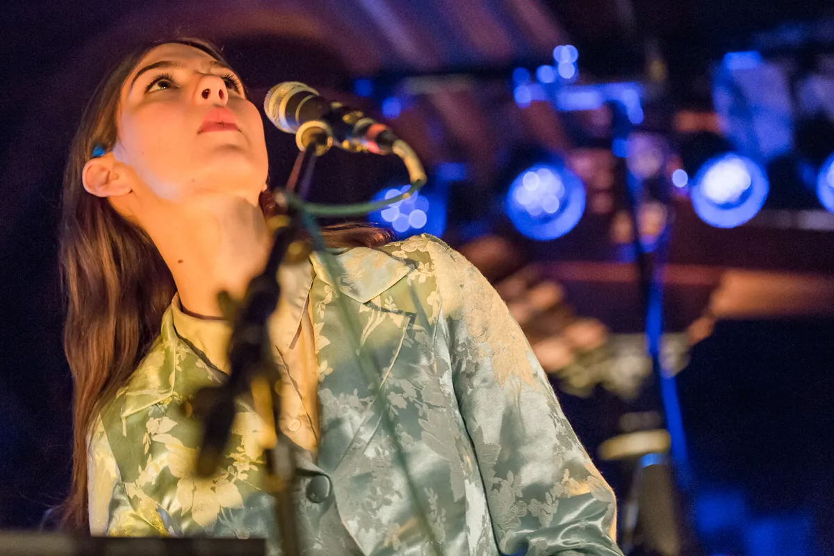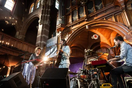 ‘Wie was er net bij Drugdealer?’ vraagt Weyes Blood halverwege haar show in Armenius, en kijkt speurend de zaal in voor vingers. ‘Als ik bezoeker zou zijn had ik daar ook gestaan.’ Als de shows niet overlapten, had ze het vast alsnog gedaan. Net als de Lemon Twigs broertjes nu rechts vooraan bij haar staan. Ze zien een bloedmooie show van Weyes Blood, die desondanks toch iets lijkt te missen. Haar galmende pop met flink wat seventiesfolk en toe een dramatische snik is perfect voor zo’n oude kerk, de luchtige grapjes over Jezus tussendoor zijn best grappig en ze heeft een goede band mee. Daar ligt het allemaal niet aan. Maar soms kunnen mooie, goed uitgevoerde liedjes alsnog iets extra’s gebruiken om zo'n rumoerige massa als hier te overstemmen.