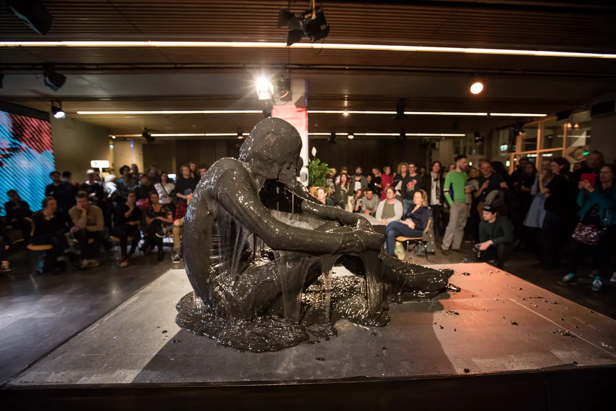 Qua energie worden de Twigs alleen nog overtroffen door Zebra Katz en Anna Meredith (en als we de foto's onderaan het artikel zien, een ontketend Idles). Iets eerder had Isaiah Rashad er nog veel harder overheen kunnen gaan in een stampvolle Bird, maar met een uur vertraging en een kwijtgeraakte stem mist hij de slagkracht die hij had kunnen hebben. Het zegt veel dat de schorre rapper uit de Kendrick Lamar-hoek met hard werken nog steeds de vlam in de pan laat slaan, maar van zijn kenmerkende krakerige soulstem is weinig over. Nee, dan Zebra Katz. In een spacend zilveren pak, met een fetishmasker en metalen slierten nephaar rapt hij loom en gevaarlijk over trage herrie electro. Loerend naar zijn publiek paradeert hij macho over het podium, langs de hoge randen van de zaal en door het publiek. Een selfie met hem maken? Geen probleem, maar dan krijg je wel een been om je nek geslingerd. Die platte party tracks hadden niet gehoeven, maar pompen de energie en geiligheid wel nog wat verder op.