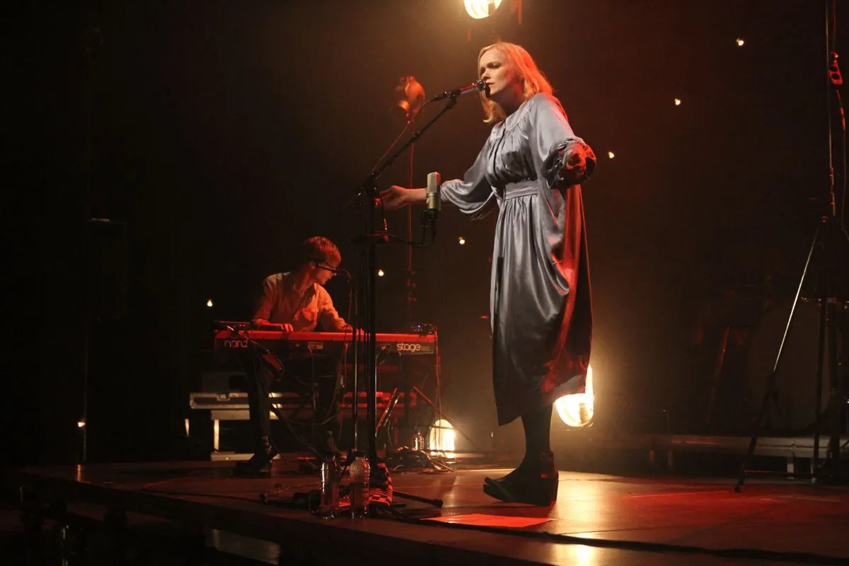 De Noorse heeft een zeer weloverwogen band bij zich. Twee drummers en twee toetsenisten, en dan nog een cello. Een opmerkelijk instrumentarium, dat duidt op heldere keuzes. Dat blijkt in de praktijk ook zo te werken: de drums spelen soms spaarzaam, maar vaak ook daveren ze door de Schouwburg. Brun legt in haar zang een combinatie van gedragenheid en kwetsbaarheid, geholpen door haar gebroken tongval en haar wat meisjesachtige stemgeluid.