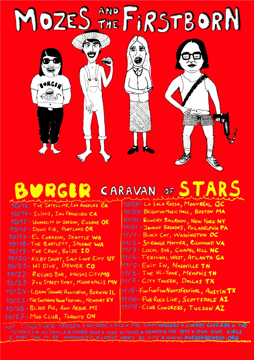 Mozes And The Firstborn gaat al even erg lekker in de States. De Eindhovense jongens wonnen veel zieltjes en tekenden bij Burger Records. Het garagecassettelabel is fan en neemt de Hollandse jongens een maand lang mee op de Burger Caravan of Stars tour, 'coast to coast' met onder meer Together PANGEA, Natural Child en Dum Dum Girls. Dat belooft natuurlijk een partij wilde avonturen, ongein, reizen, reizen en nog eens reizen en toffe muziek. Oftewel: 'Mozes and the Firstborn are chasing the American dream again!' Drummer Raven Aartsen houdt voor 3voor12 een wekelijks tour-/Instagram-blog bij.
