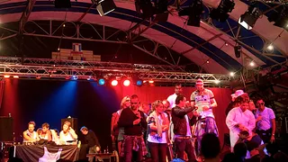 Helaas is hiphopgroep HydroBoyz uit Amsterdam al bijna afgelopen, de SFFRMKRS-tent staat goed vol. DJ Cream draait de set naar huis met happy hardcore klassiekers van onder meer Paul Elstak en Charlie Lownoise & Mental Theo. De overgang naar DJ Abstract is hard, maar daar maalt hij niet om. Hij smijt met enkel hits van onder meer Jay-Z, Timbaland, Neptunes, M.I.A, Ski Leraar Bruin Money Gang, Major Lazer, Partysquad, Katy B, Wocka Flocka, Sloddervosgang. Mc Akwasi van Zwart Licht brult het geheel aan elkaar. Hij rapt een eigen track mee, roept op om los te gaan, schenkt cognac en krijgt de goed gevulde tent los. Ook DJ Turne die Abstract opvolgt draait enkel de bekende hits. Zou het nodig zijn op een festival waar hiphop nog een ondergeschoven kindje is? Na nog een uur Snoop Dogg, Fat Joe, Big Boi of Missy Elliott is de tent behoorlijk leeg. De doorgebroken zon zal hier ook zeker mee te maken hebben.