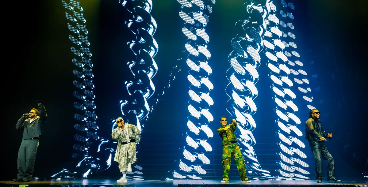 Stilte voor de tsunami in Ziggo Dome, maar als je goed kijkt zie je hem al zitten: Ronnie Flex, in een geweldig mooi grijs-wit pak op een LED-scherm dat als een mega golf omhoog krult tegen de achterwand van Ziggo Dome. Hij trapt af met de ballad ‘Het Is Zover’. Niet het eerste nummer waar je aan denkt bij New Wave, maar destijds wel degelijk het begin van het album. ‘Ik ben beter dan je ex’, klinkt meteen een echte New Wave zin, Jonna Fraser erbij. Dan trapt Ronnie het gaspedaal in voor stripclubtrack ‘Hoog/Laag’ en zijn we vertrokken voor de dollemansrit die vijftig hits lang duurt.