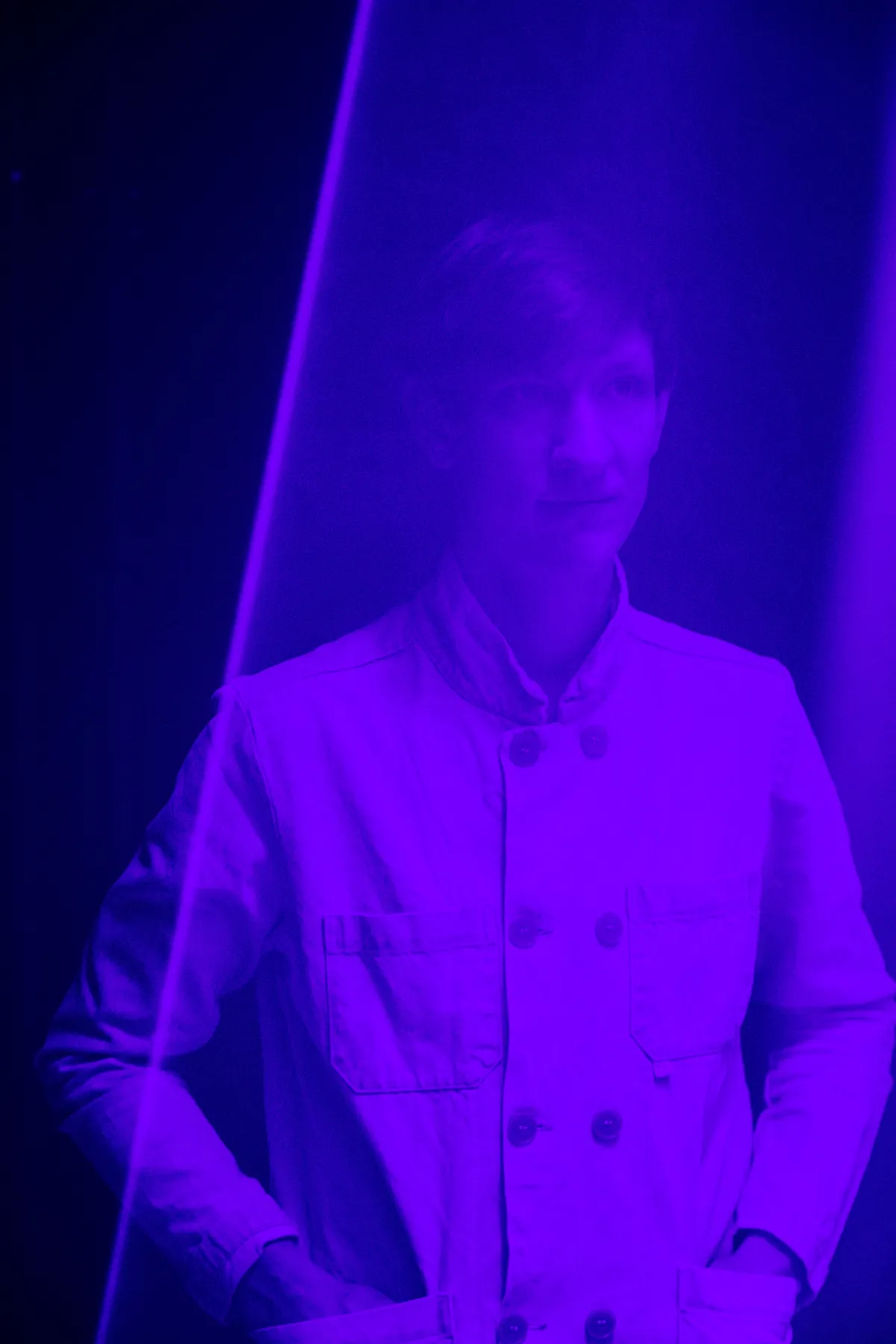 ‘Sorry dat we iets later waren, we zaten in een kabelsessie’. Nick Verstand zit midden in de voorbereiding voor Within Without, de voorstelling waarmee hij volgende week in vier dagen tien keer speelt in een van de mooiste theaters van Nederland, Carré. Of speelt, voorstelling, hoe moet je het eigenlijk omschrijven wat hij precies doet? Hij werkt aan een audiovisueel totaalconcept, een samensmelting van licht en geluid, décor en muziek, performance en installatie. ‘Morgen komen de muzikanten’, zegt Verstand, met naast hem Salvador Breed, de hoofdverantwoordelijke voor de muziek in de voorstelling. Hem kennen we onder meer als co-curator van Le Guess Who in 2019, samen met modeontwerper Iris van Herpen. Breed: ‘Ik heb nog nooit zo’n goed voorbereide productie meegemaakt als deze.’