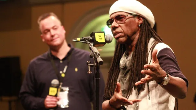 Bij zijn eerdere bezoek aan Amsterdam Dance Event kreeg gitarist Nile Rodgers vooral vragen over zijn pionierswerk in de disco-tijd. Nu is ineens alles anders, want de Chic-legende speelt op de grootste hit van het 2013: Daft Punks Get Lucky. Bij optredens speelt hij dat nummer niet (beloofd aan Daft Punk), maar in het vraaggesprek met Saul van Stapele wil hij op zijn befaamde Hitmaker gitaar best even voordoen hoe de song ontstond. 'Het is pas de vierde keer ooit dat ik dit speel.'