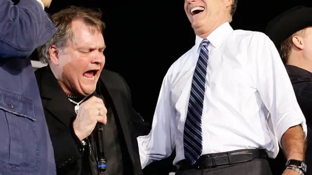America the Beautiful krijgt bij deze rally van Romney vorige week een dramatische muzikale verkrachting door Meat Loaf en nog wat andere verlopen countryzangers. En hoe! Allejezus, beschamend dekt niet eens de lading bij dit optreden. Meat Loaf solliciteert regelrecht naar de award voor 'slechtste impressie van een uitgerangeerde priester' van het jaar. Of kunnen we dit optreden misschien scharen onder de noemer ‘ingehuurd door het Obamakamp om Romneys campagne te saboteren’? De Republikeinse senator John McCain, die in 2008 het kandidaatschap van George W. Bush verloor, vond het Meat Loaf-incident ook niet zo'n slimme zet: "Misschien moeten ze de volgende keer iemand kiezen die de woorden wel kent."