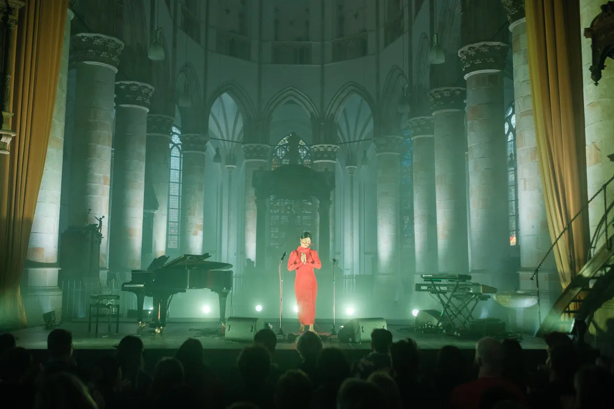 Daarna is het rennen geblazen om op tijd te zijn bij de show van Hatis Noit in de Grote Kerk, een Japanse zangeres die haar debuut uitbracht op het label Erased Tapes (waar Nils Frahm ook zijn muziek uitbrengt) en een schijnbaar fabelachtige show speelde op Le Guess Who?. Dat blijkt: met een looppedaal vormt ze zich om tot een meerkoppig koor dat tig vocale tradities tegelijkertijd beheerst. Gregoriaanse zang, opera, Japans klassiek, speels en modern in de traditie van Meredith Monk, bizar als je bedenkt dat ze auto-didact is. Ze vermengt alles in impromptu stem-composities die het kippenvel over je lijf laten gieren. Op een festival dat veelal het experiment zoekt in elektronica, laat Hatis Noit zien dat er vernieuwing zit in het vermogen van de menselijke stem.