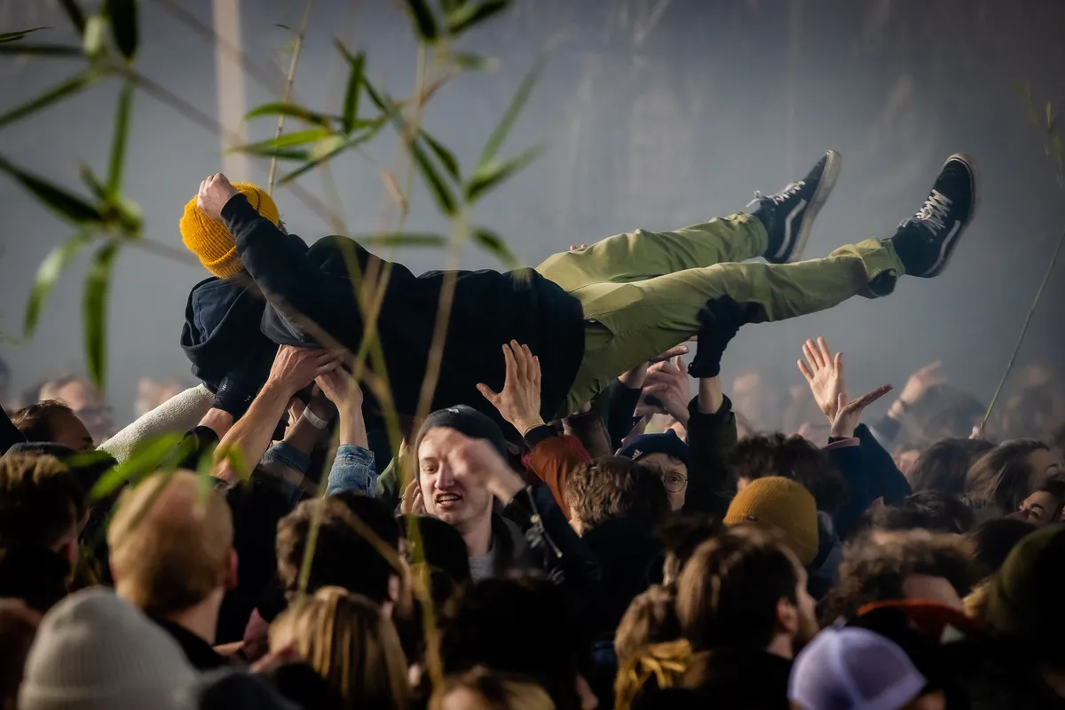 Even later gooit Maan haar allerbeste Dua Lipa-dansjes en gigantische glimlach in de strijd. Met haar band is ze duidelijk een geoliede machine die straks Paaspop gaat platspelen, daar kun je van op aan. Over geoliede machines gesproken: dat er een jaar is verstreken merk je allerminst bij De Staat. Bij de Nijmeegse rockband is het weer business as usual, inclusief de kolkende pits om de opgebouwde knaldrang in uit te storten en waar je je nu sowieso wel in moet mengen, wil je niet vergaan van de vrieskoude.