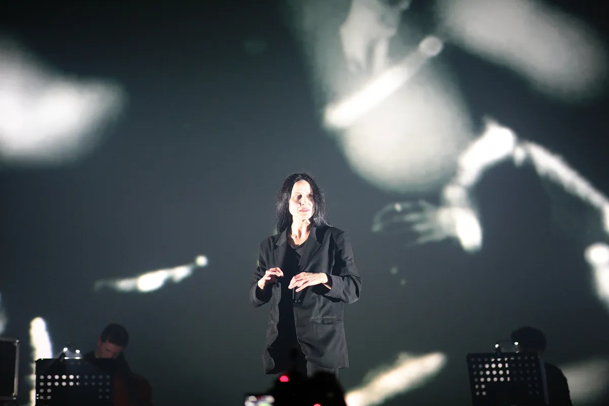 En de show van Keeley Forsyth dáárna? Magistraal! De Engelse actrice debuteerde vier jaar geleden met een plaat vol spaarzame composities, die volledig in dienst staan van haar stemgeluid. Op Rewire debuteert ze de nieuwe A/V-show van haar aankomende album The Hollow, en die klinkt en oogt geweldig. Keely, met sluik zwarte haar dat vóór haar gezicht naar beneden valt, loopt gebogen over het podium alsof ze het verdriet van de wereld op haar schouders draagt, in zwart pak voor witverlichte schermen. Ze heeft de dictie van een Shakespeariaanse acteur, en maakt subtiele, maar elegant gechoreografeerde bewegingen. Haar spookachtige stem galmt door de Grote Kerk heen. ‘I crrrrrrrrrystalize at your feet,’ huilt ze over dissonante viool en een desolate drumkick, en hoor je dat? Nee? Dat klopt, complete stilte!