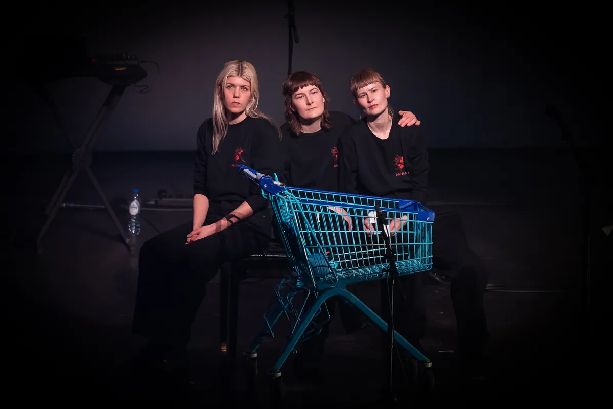 Wat het ook goed doet op Rewire: artiesten die muziek koppelen aan performance, die daarmee een extra dimensie aan hun optreden geven. Oké, het optreden van Jenny Hval, met synthdude aan de knoppen, voelt nogal knullig. Al helemaal wanneer ze hardop fantaseert over een leven als hamburger, en de technicus ons door de technische rider heenloopt. De show van Gazelle Twin daarentegen, in de Schouwburg even verderop, is superspannend, een soort Lynchiaanse koortsdroom met vervormde vocalen, creepy soundscapes en visuals.
