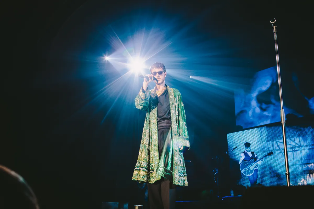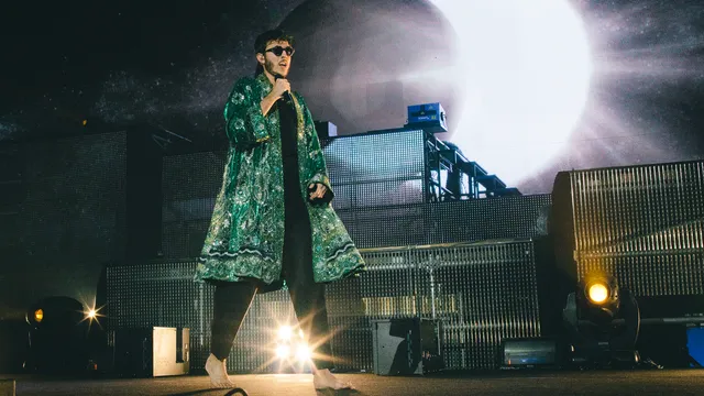Hoe laat je tienduizenden mensen dansen met tranen in de ogen? Oscar and the Wolf speelde gisteren zijn allergrootste show ooit in het Sportpaleis. En het is indrukwekkend hoe achteloos frontman Max Colombie het gehele stadion inpakt met een majestueuze podiumproductie, nieuw werk en bergen vuurwerk.