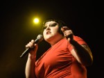 Gossip IS Beth Ditto. De imposante zangeres, ditmaal stijlvol in het rood, draagt deze dienende band. Ook vandaag doet ze dat weer met verve. Rennen, springen, vliegen, duiken, vallen opstaan en weer doorgaan.