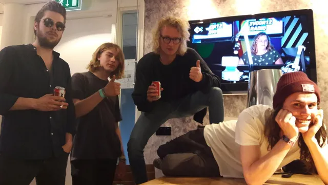 En tijd voor voorbereidingen komt goed uit, want ze gaan nieuwe muziek spelen. 'Die moeten we dan nog wel even maken,' zegt een van de bandleden van Palmsy. Ook gaat het nog even over hun haat voor wetsuits. Waarom? Dat hoor je hier.