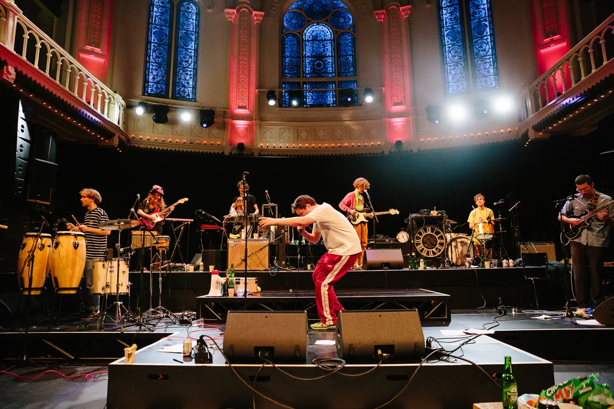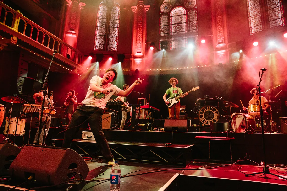 Dus hoe duik je dan in zo’n urenlange show? Zoals je een marathon loopt, rustig effe warmdraaien om de spieren los te krijgen? Nee joh, Personal Trainer gaat er met gestrekt been in (letterlijk) en speelt vol overtuigingskracht ‘The Lazer’. Willem geeft echt alles al dat eerste nummer, schreeuwt, springt over het podium als een bezetene, zoals hij dat ook deed met die geweldige show op Noorderslag 2020, midden in de nacht op Best Kept Secret een jaar eerder en ook op Loose Ends. Het is wat die band zo leuk maakt: Personal Trainer speelt gitaarmuziek in de geest van Pavement, maar dan nog eens een stuk groovier en vreugdevol gebracht. Het is ook wat de band zo succesvol maakt: het bracht zijn muziek uit via het label van de bevriende Britse band Sports Team, had afgelopen jaar eigenlijk een hele mooie UK-tour in de agenda staan, een dikke berg Nederlandse festivalshows, maar ze werden uitgesteld en uitgesteld, verplaatst en verplaatst. Om al die verloren shows te compenseren, spelen de bandleden nu zo lang, kondigden ze vooraf met een knipoog aan. Al die energie moet eruit vandaag, en het lijkt wel alsof Willem het er al dat eerste nummer uit wil persen.