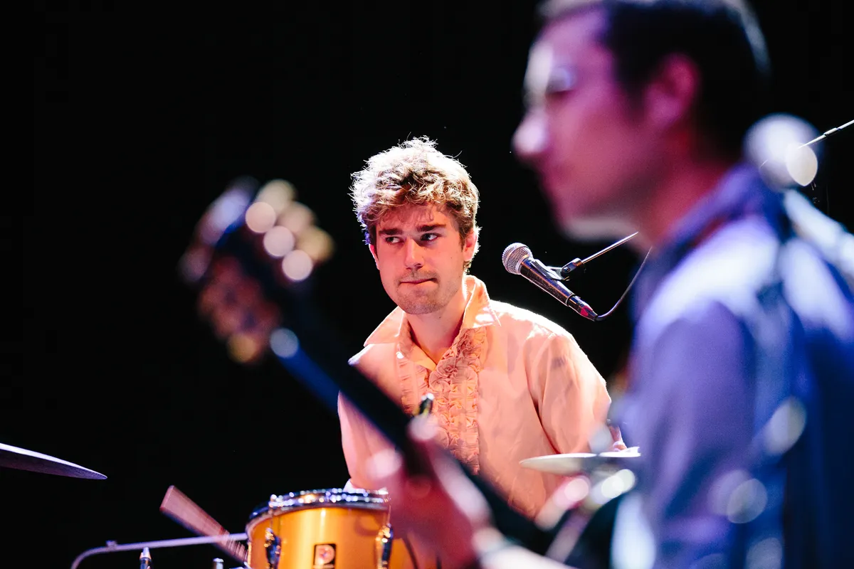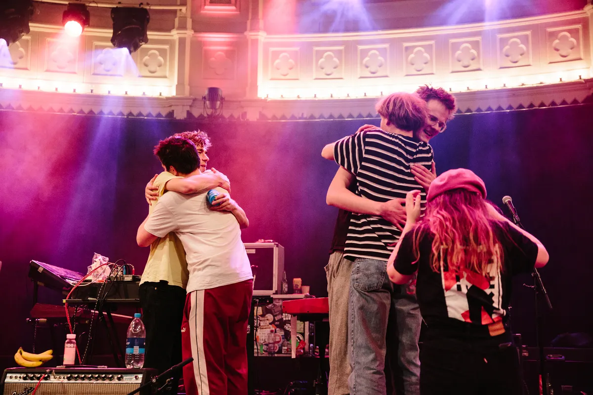 En eerlijk? Die allerlaatste set, dat allerlaatste uur, klinkt Personal Trainer weer geweldig. Nog bijna net zo goed als de eerste set, zelfs. Drummer Kick trilt helemaal, zijn handen zitten vol blaren en zijn spieren beginnen te verzuren, maar hij verslapt geen moment. Kilian gaat nog maar eens een rondje rennend door de zaal terwijl hij op zijn koebel slaat. En ook Willem staat met een dikke grijns te spelen. ‘Het was een meevallertje’, zegt hij. ‘Ik ben blij dat het voorbij is. Ik ben blij dat we het hebben gehaald’, zucht een ander met moede oogjes.