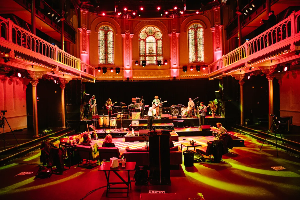 Ja hoor. De band speelt door, heel de nacht, voor altijd. Ze doen een slowcoreset, eentje met knisperende elektronica en ergens rond zes uur in de ochtend zit een vrolijke cover van ‘Toppertje’ verstopt. Dit moet haast wel een record zijn, toch? ‘Nou ja’, weet de receptionist van Paradiso te vertellen, ‘er was eens een drummer in Paradiso die wel 50 uur lang heeft gespeeld. Bennie Groen is zijn naam, in 1968.’ Dikke knipoog. ‘Maar dat deed–ie vast niet alleen op broodjes pindakaas.’