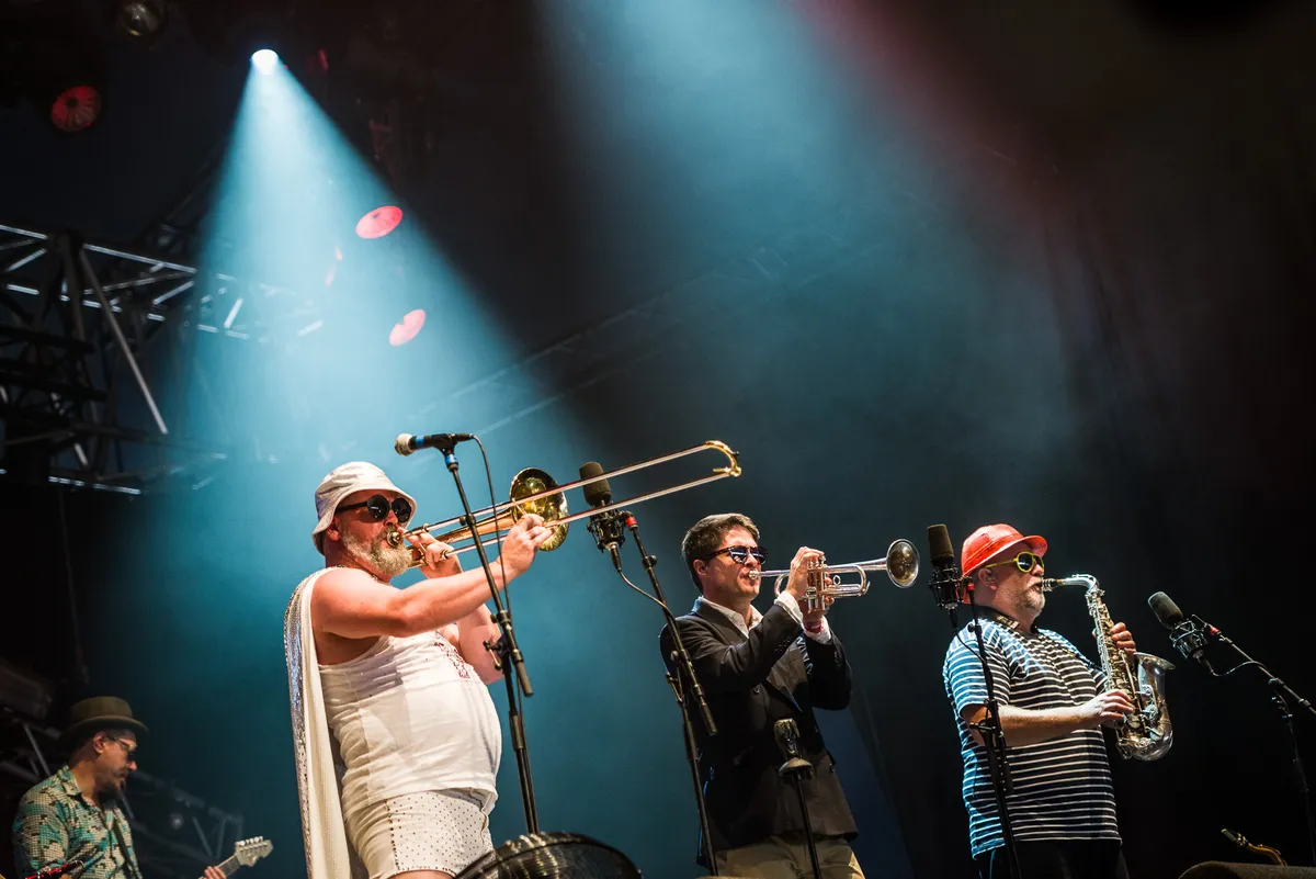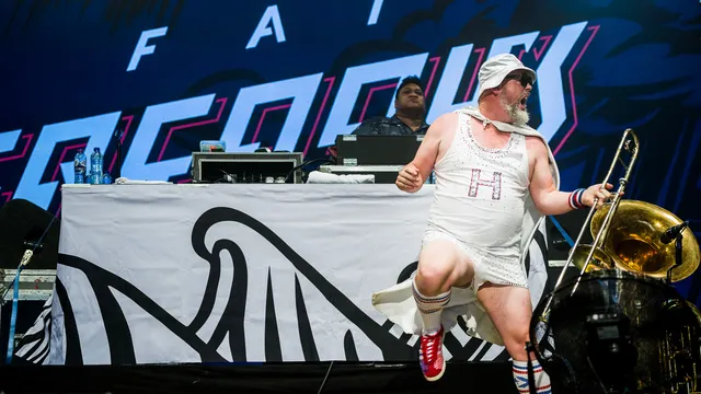 Stel: je hebt bijna drie volle dagen Pinkpop in de benen, komt net van het rustige Passenger vandaan op de Main Stage, wat wil je dan in de Brightlands-tent ernaast? Even wat energie, toch? Nee? Kennelijk niet. Daar gaan een paar duizend man bijzonder lekker op het Nieuw-Zeelandse Fat Freddy’s Drop: een formatie die eind jaren 90 als jam-band begon en nu als een volleerde act de festivals aandoet met een zomerse combinatie van reggae, dub, jazz en house. Om dat te kunnen realiseren is er een MC, zanger, toetsenisten, gitaristen en een blazerssectie.