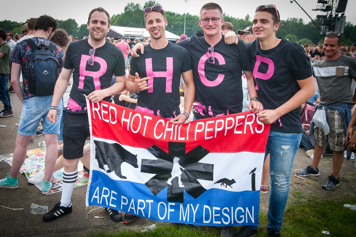 Red Hot Chili Peppers is al sinds de jaren negentig niet meer dat undergroundbandje dat furore maakte met een mix van funk, rap en rock. Met Blood Sugar Sex Magik en diens killerballade 'Under the Bridge' verwierf de band een mainstreamstatus en anno 2016 passen de Peppers met gemak in het rijtje U2, Coldplay en Muse. Logischerwijs is RHCP dan ook de perfecte headliner voor de Pinkpopvrijdag. 3voor12 mengde zich in de voorste rijen waar de diehard Pepperfans alvast vol ongeduld zaten te wachten voor hun hoogtepunt van Pinkpop 2016.