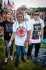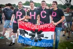 Robin, Raymond, Mitchell en Fedor trekken als viertal de aandacht vanwege hun RHCP shirtjes. 'Speciaal voor dit optreden laten drukken,' vertellen ze trots. En dat is niet het enige materiaal dat ze bij zich hebben om hun band te steunen. In het gras ligt een netjes opgerolde vlag met Pepperlogo. Robin is de grootste fan van het viertal. Hij moet even tellen op de vraag hoe vaak hij de Peppers al gezien heeft en komt tot de conclusie dat dit de zeventiende keer is. Hij ging onder andere naar Dublin, Parijs, Barcelona en stak zelfs de oceaan over om de band in Tampa aan het werk te zien. Zijn hoogtepunt van al die concerten was zonder twijfel Dublin. 'Ik lag daar al om acht uur 's morgens voor de deur en stond tijdes het optreden dan ook echt he-le-maal vooraan.' Robin raakte met het Peppers-virus besmet met het uitkomen van comeback-album Californication. 'Sindsdien is het Peppers wat de klok slaat. Ik had zelfs een eigen Red Hot Chili Peppers-museum. Totdat mijn stekje moest wijken voor de kinderkamer,' vertelt Robin. 'Hij had meer dan de Peppers zelf,' valt zijn vriend Fedor bij. 'Van drumstokken tot gouden platen tot gesigneerde spullen.' Zijn mooiste bezitting is een gouden plaat die hij voor duizend euro kocht op Ebay. 'Het speciale hieraan is, dat hij gericht is aan John Frusciante. Deze platen zijn een stuk zeldzamer dan die gericht aan de platenmaatschappij.' Of de Peppers belangrijker zijn dan het vrouwtje, daar wil de Dordtenaar niet op ingaan. 'Maar het feit dat zij nu haar verjaardag viert en ik hier zit, zegt genoeg lijkt me.'