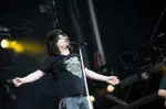 Het is druk voor het podium, heel druk, zo druk als wij deze editie voor het tweede podium nog niet eerder zagen. Counting Crows heeft natuurlijk een hele goede naam in Nederland, maar die vele belangstellenden worden toch niet bepaald verwend. Vooraan leven mensen mee met ieder woord en iedere beweging, maar de gebrekkige beleving op het podium vindt zijn weerslag in de aandacht op een paar meter verder van de stage. Adam is voor 'A Long December' achter de piano gekropen, en we maken ons op voor een stemmig hoogtepunt, met in ieder geval weer een makkelijk mee te zingen refrein ('Nananana nananana, yeah yeah yeah'). De frontman voelt wellicht dat de gezapigheidsmeter wat te ver doorslaat en legt voor het refrein even wat meer passie en rauwheid in z'n stem en jawel: iedereen wakker, inhaken en meezwaaien. Verder is het vooral heel gezellig in het publiek. Beetje niveau braderiesfeer: 'Oh wacht, er staat iemand met een trekzak on stage. Wat zeg je? Ja inderdaad, nee doe maar bier joh. Wie speelt er eigenlijk zometeen?'