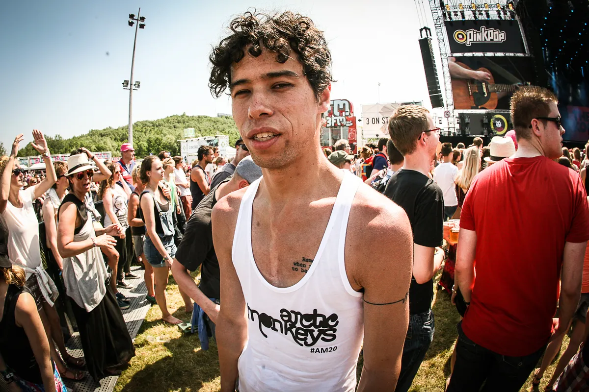 Gisteren domineerden The Rolling Stones shirts het Pinkpop terrein. Vandaag Arctic Monkeys zou je verwachten, maar dat valt vies tegen. De shirts van deze band zijn over het algemeen zwart en het is vandaag weer bloedheet, dus hopelijk ligt het daaraan. Ondanks dat zijn we als razende reporters op zoek gegaan naar fans van deze Britse indierockband uit Sheffield.