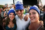 Respect voor de volgende fans, want ze hebben een muts op met dit warme weer. Net aangeschaft bij de merchandisestand. De 27-jarige Jasmijn (rechts op de foto) is fan vanaf het begin. Nu de band album 'AM' heeft uitgebracht gooien zij nog hogere ogen bij deze fan. "Je merkt op het nieuwe album dat de jongens ouder worden en dat ze hebben samengewerkt met Josh Homme. Ze hebben echt hard aan het album gewerkt en in de desert gezeten. Ik hou ook erg veel van stonerrock, dus dit is voor mij een heerlijk album." Jasmijn heeft de band drie keer gezien. "Ik zie ze het liefst op festivals. Als ze in Paradiso staan zou ik er moeite voor doen, maar ik hoef niet naar een concert in 013 of iets dergelijks. Een festival heeft sfeer en daar komt de beleving meer tot zijn recht."