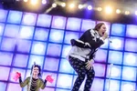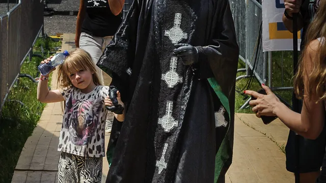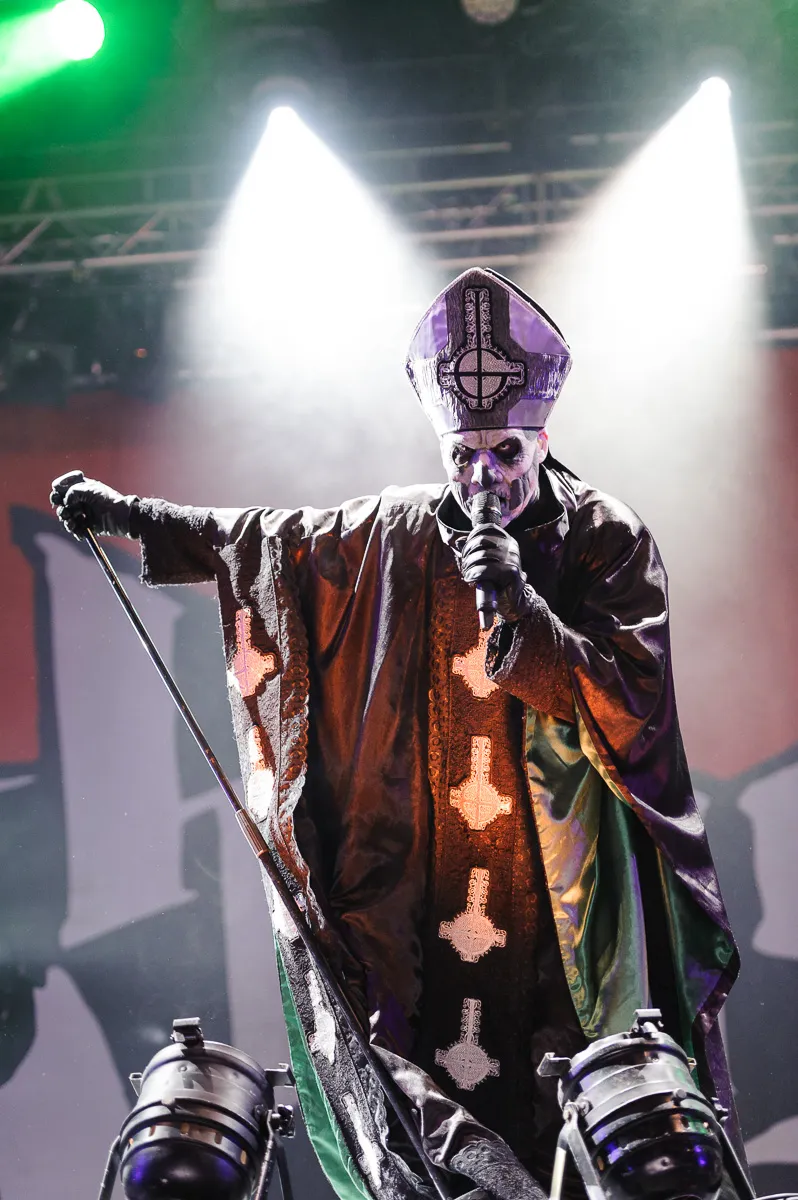 De foto van de dag is al gemaakt, gokten wij vanmiddag. Hierboven zie je Papa Emeritus II, de frontman van de occulte Zweedse act Ghost, backstage hand in hand met zijn dochtertje. Maar we stand corrected: het gigantische onweer zorgde voor spectaculaire foto's op deze laatste festivaldag. Bekijk ons groeiende fotoverslag.