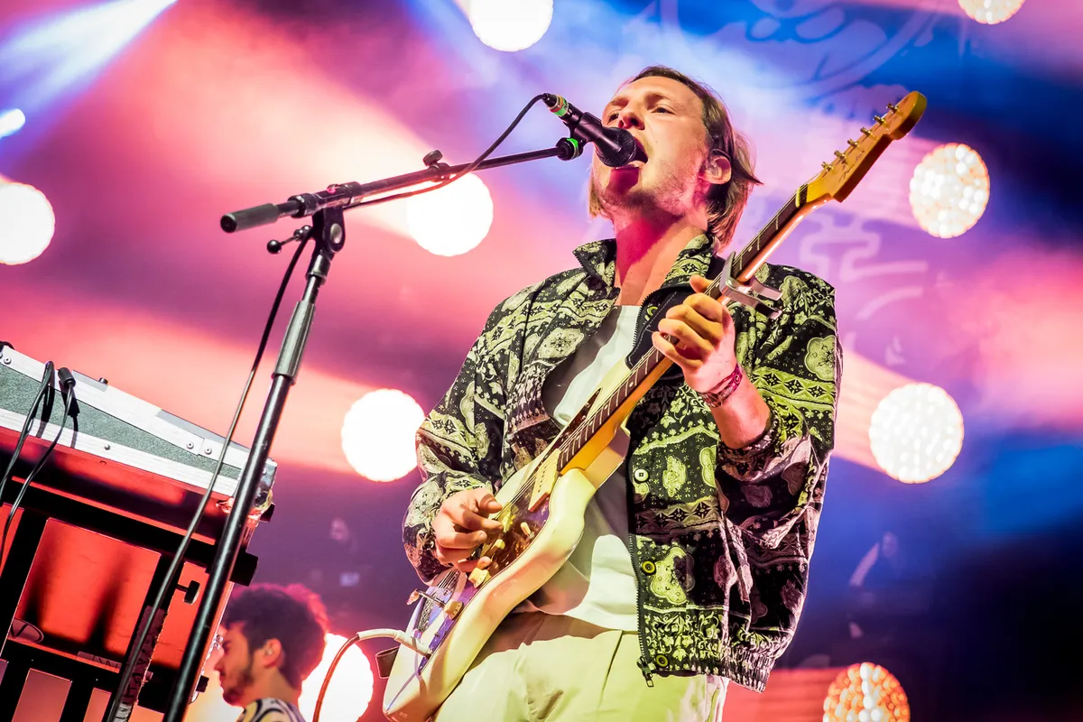 Kiezen tussen twee Nederlandstalige acts tegelijk, wat een weelde. Op het hoofdpodium het sentiment van het aloude Doe Maar, op Stage 4 de exclusievere frisse keuze van nieuwe Vlaamse band Bazart. Het wordt die laatste, al zijn er maar weinigen die dezelfde keuze maken.