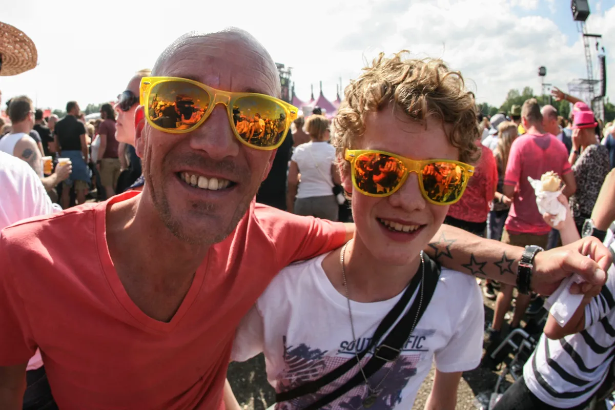 Vader Alex (47) en zoon Thom (17) uit Breda zijn dit weekend samen op stap. Het is de tweede keer Pinkpop voor Thom. Alex heeft Pinkpop in 1986 bezocht in Geleen. Vorig jaar was zijn leukste Pinkpopervaring. 'M'n kind meenemen naar bands als The Rolling Stones en Metallica was erg bijzonder!' Thom is muzikaal opgevoed en luistert graag naar rock, metal en blues. 'Ik ben vooral onder de indruk van het optreden van Slash. Helaas gaat Foo Fighters niet door. Ik had AC/DC een waardige vervanger gevonden.'